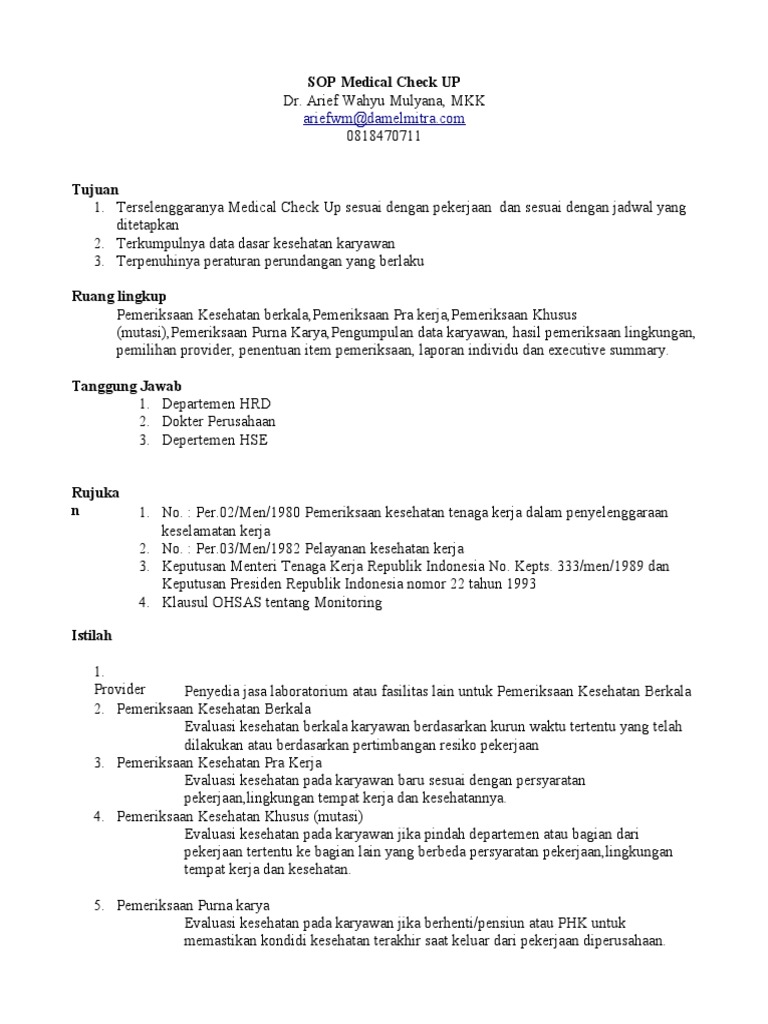 Contoh Sop Untuk Medical Check Up